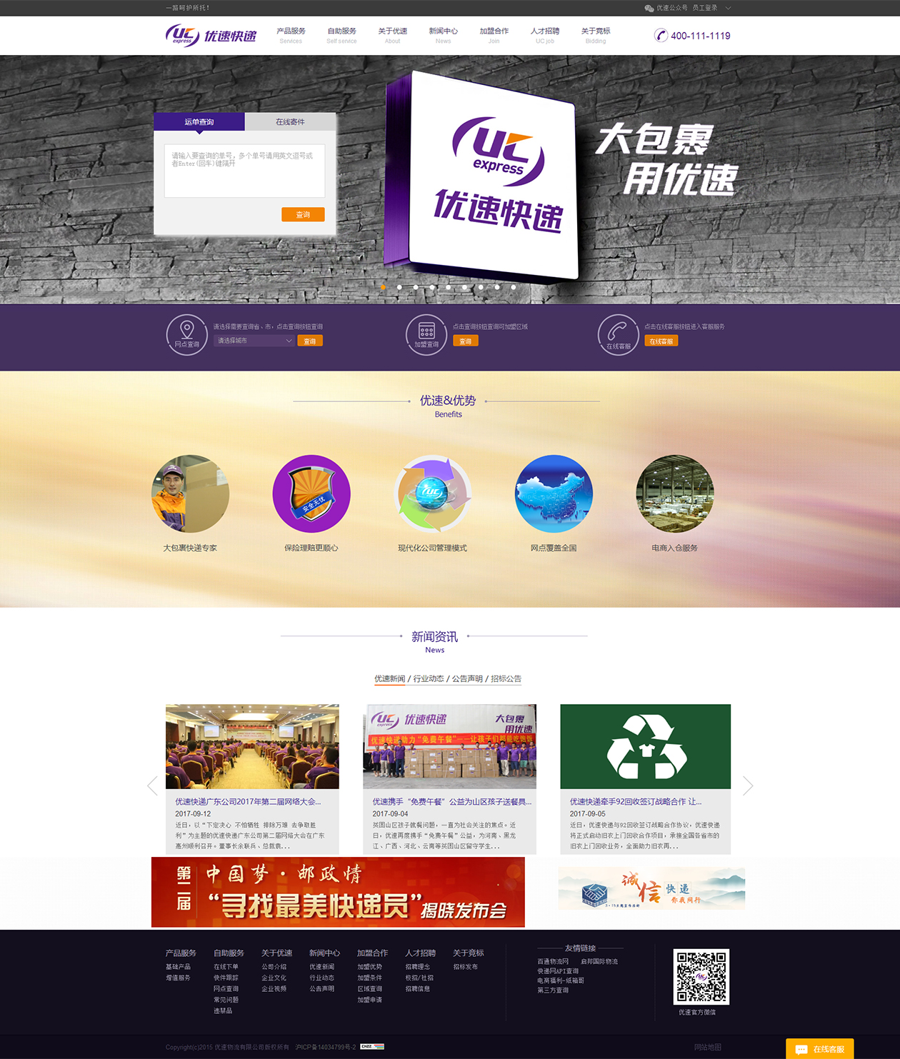 優速物流有限公司是一家新成長的深具發展潛力的大型快遞物流公司,主要為客戶提供麵向全國各大、中城市的半日達、次日達、隔日達快遞、物流服務,同時可提供國際業務、代收貨款、簽單返還、高價值業務等增值服務,並提供大陸與港澳之間專業快件進出口服務。