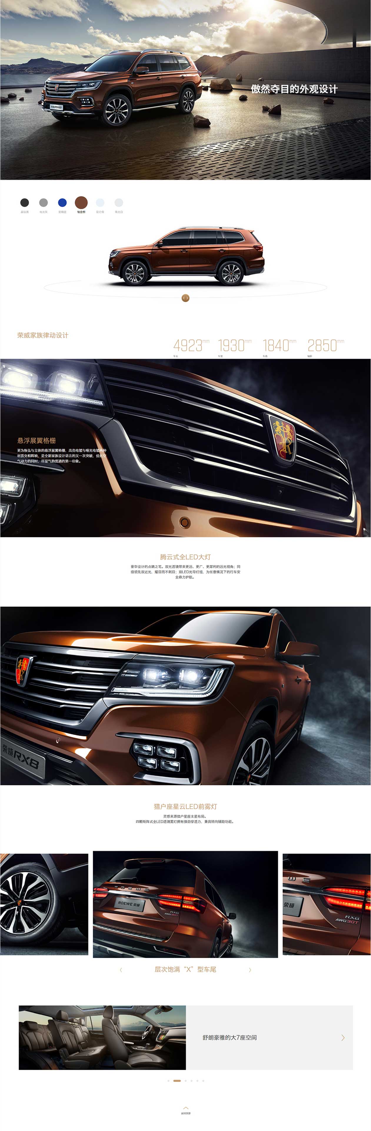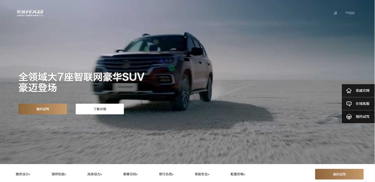 榮威家族律動設計語言的全新巔峰造詣,在榮威RX8出場那一刻奪目呈現:於硬朗中抒發優雅,於克製中釋放張力,陽剛與細膩達成極致和諧。