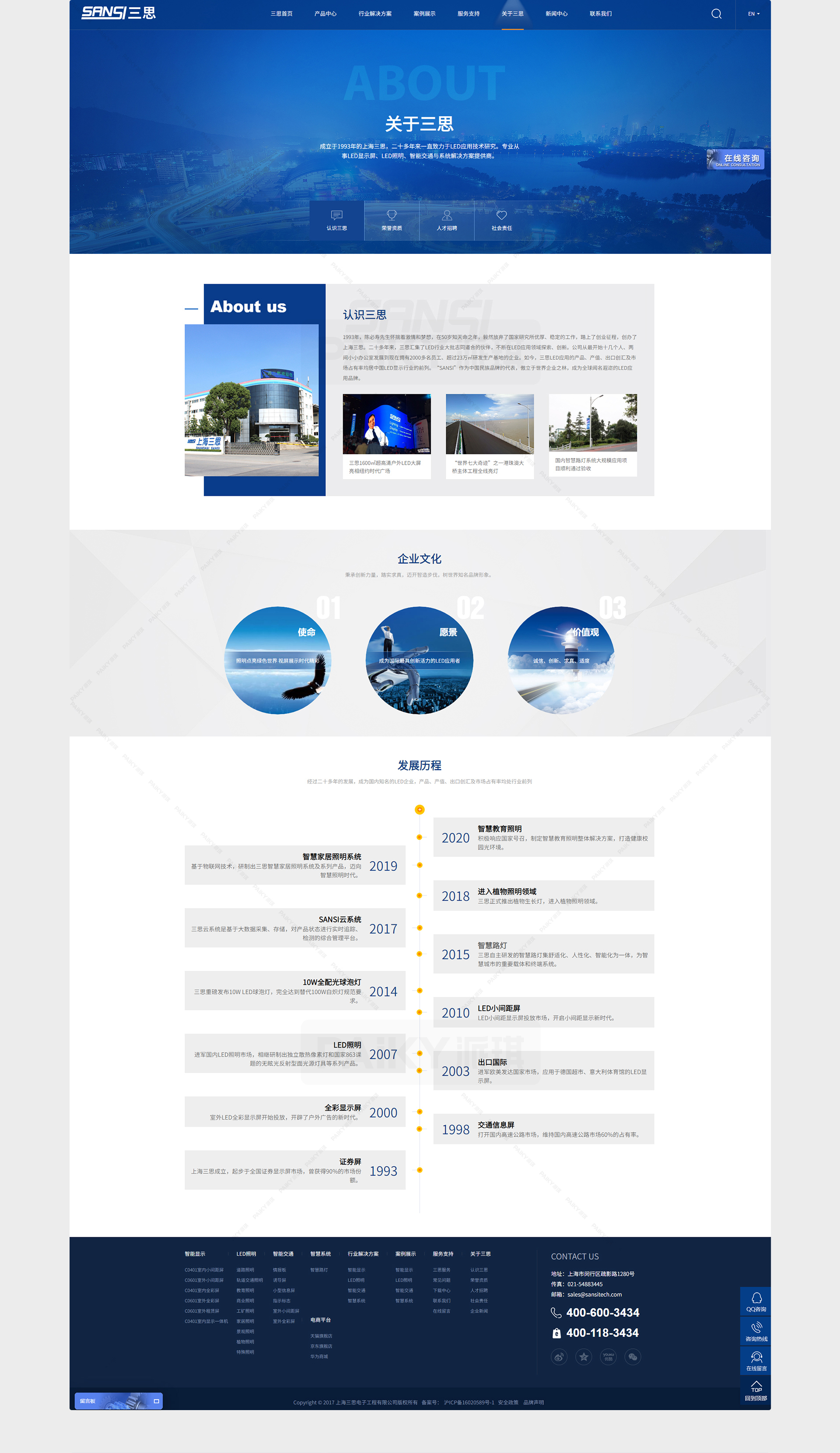 上海三思電子工程有限公司創立於1993年,從早期的十餘人發展成為現在員工2000多名、研發生產基地超過23萬㎡的大型LED科技型企業,始終在LED顯示屏、LED照明和係統集成解決方案領域立足行業前沿。