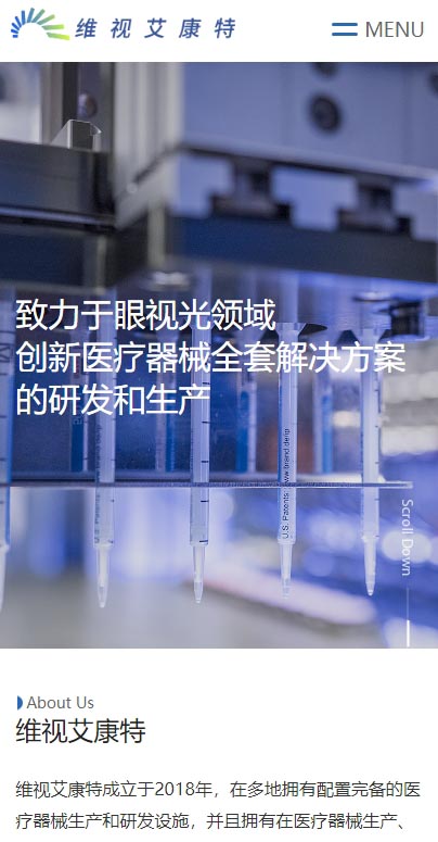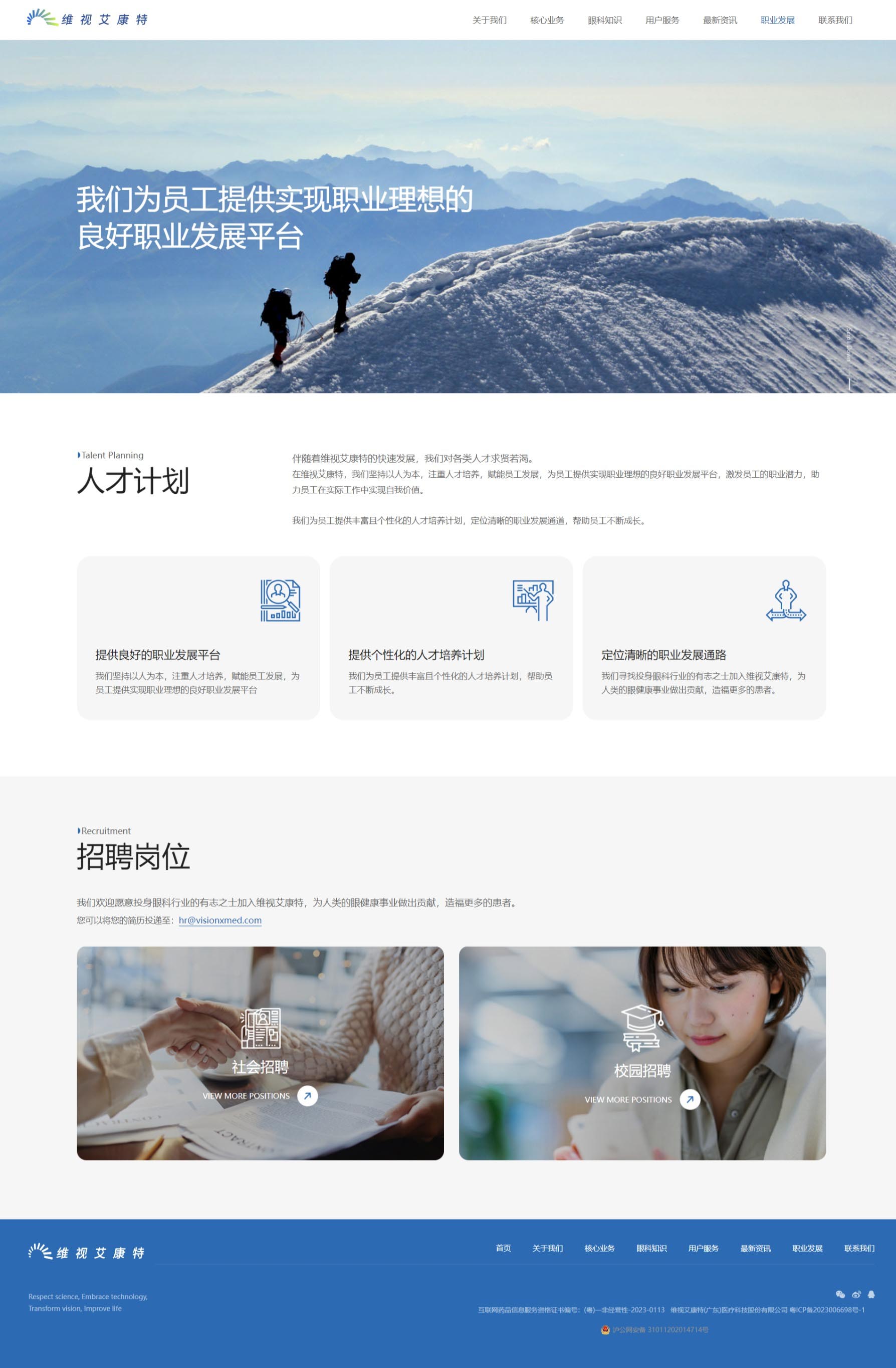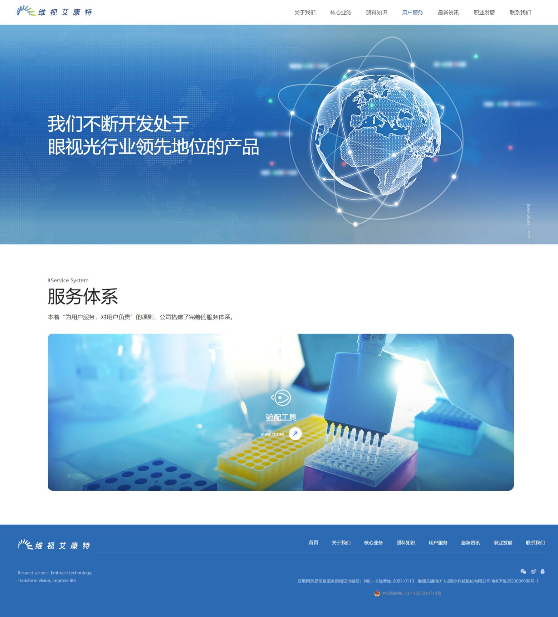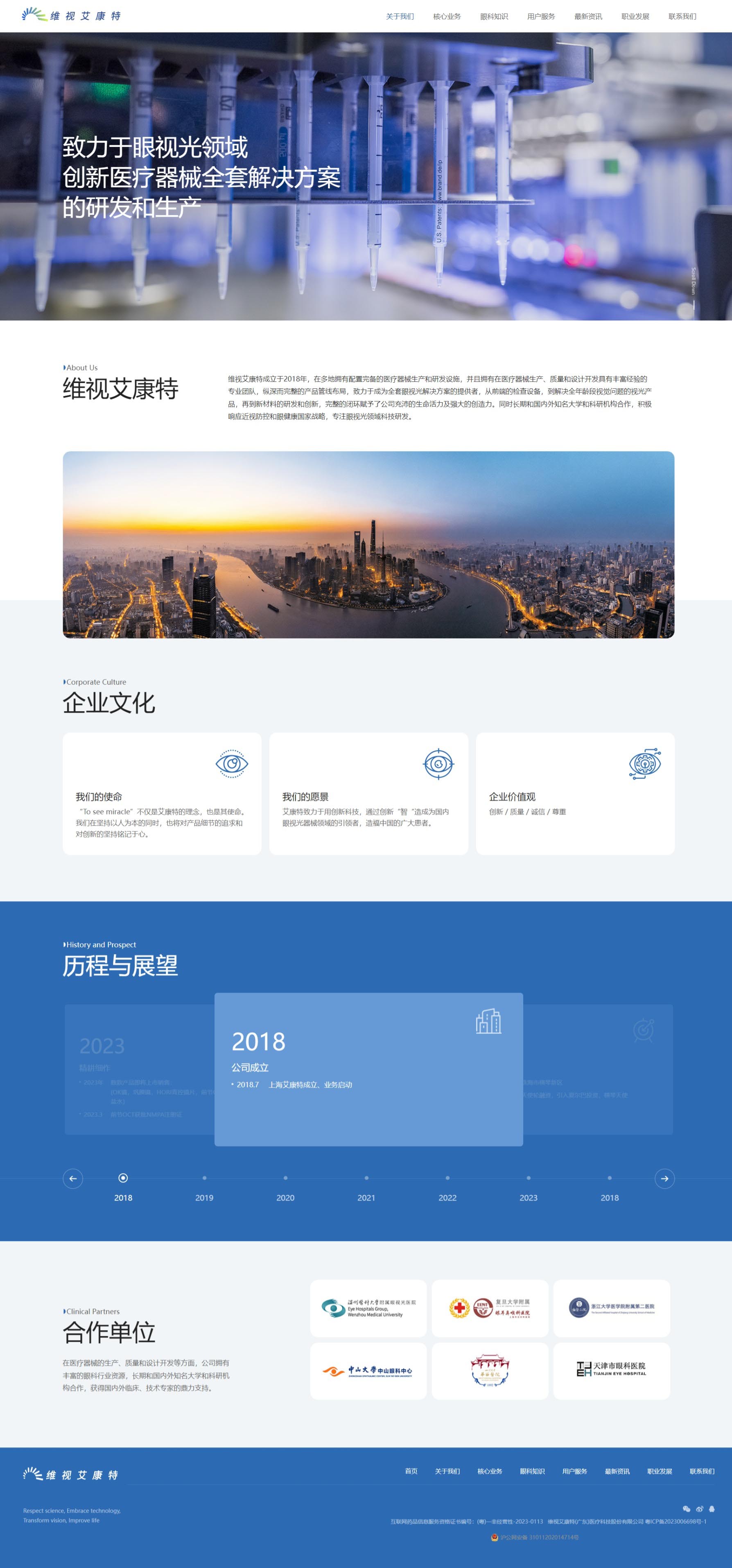 維視艾康特官網風格定位精準,融合“專業、科技、舒適”三大要素。深藍色基調彰顯專業與信賴,細節處理體現對醫療領域的深刻理解。科技元素的巧妙融入,如動態效果與視頻展示,展現企業創新實力,引領行業前沿。同時,注重用戶舒適性體驗,通過優化加載速度、清晰導航與舒適視覺設計,確保用戶流暢瀏覽,提升整體滿意度。