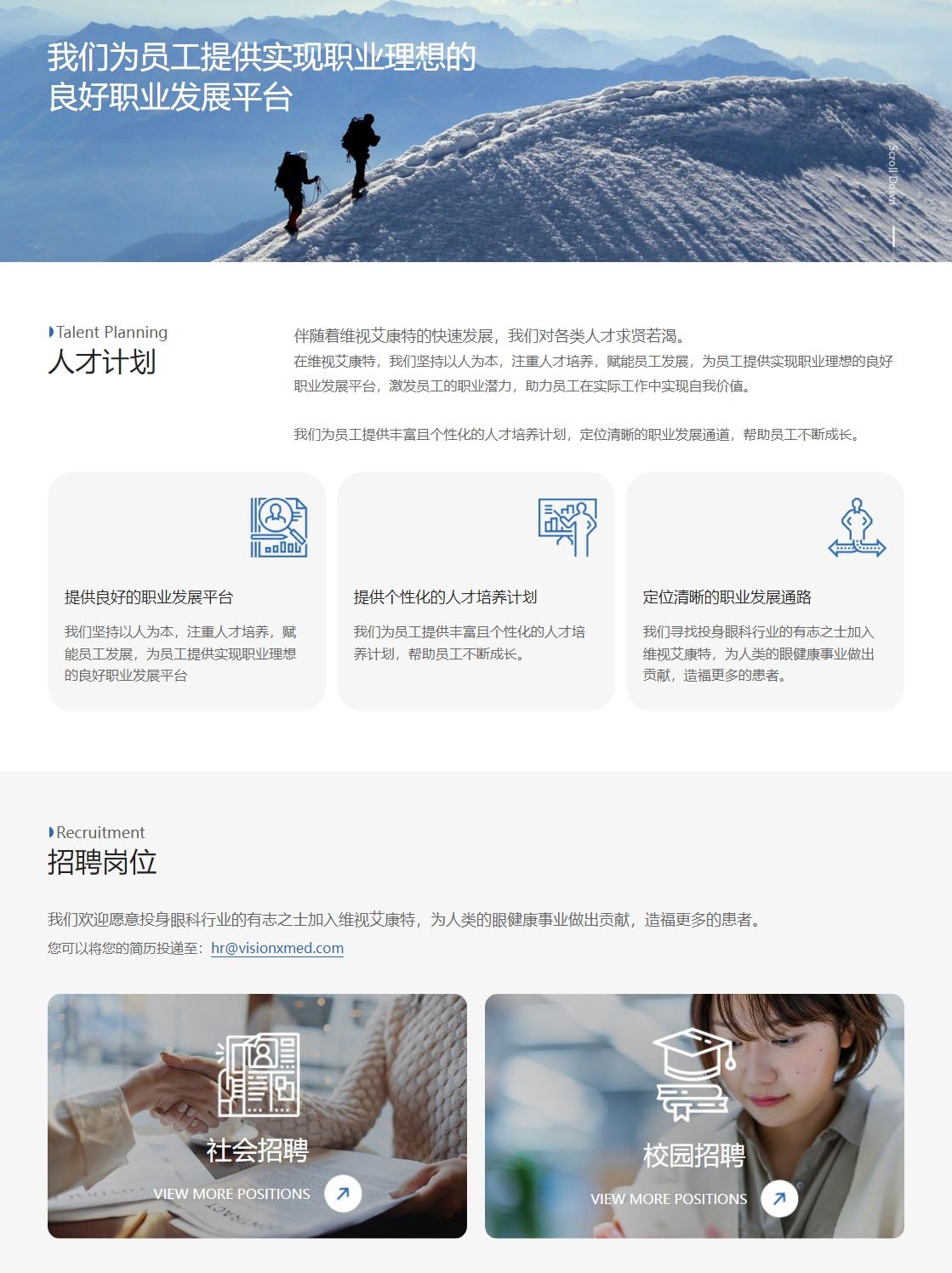 維視艾康特官網以白色為主調,輔以淡藍、黑、白三色,彰顯專業與科技感。色彩搭配既符合醫療行業規範,又突出企業穩重與創新特質。網站設計清晰易讀,提供優質瀏覽體驗,有效傳達品牌形象與核心價值。