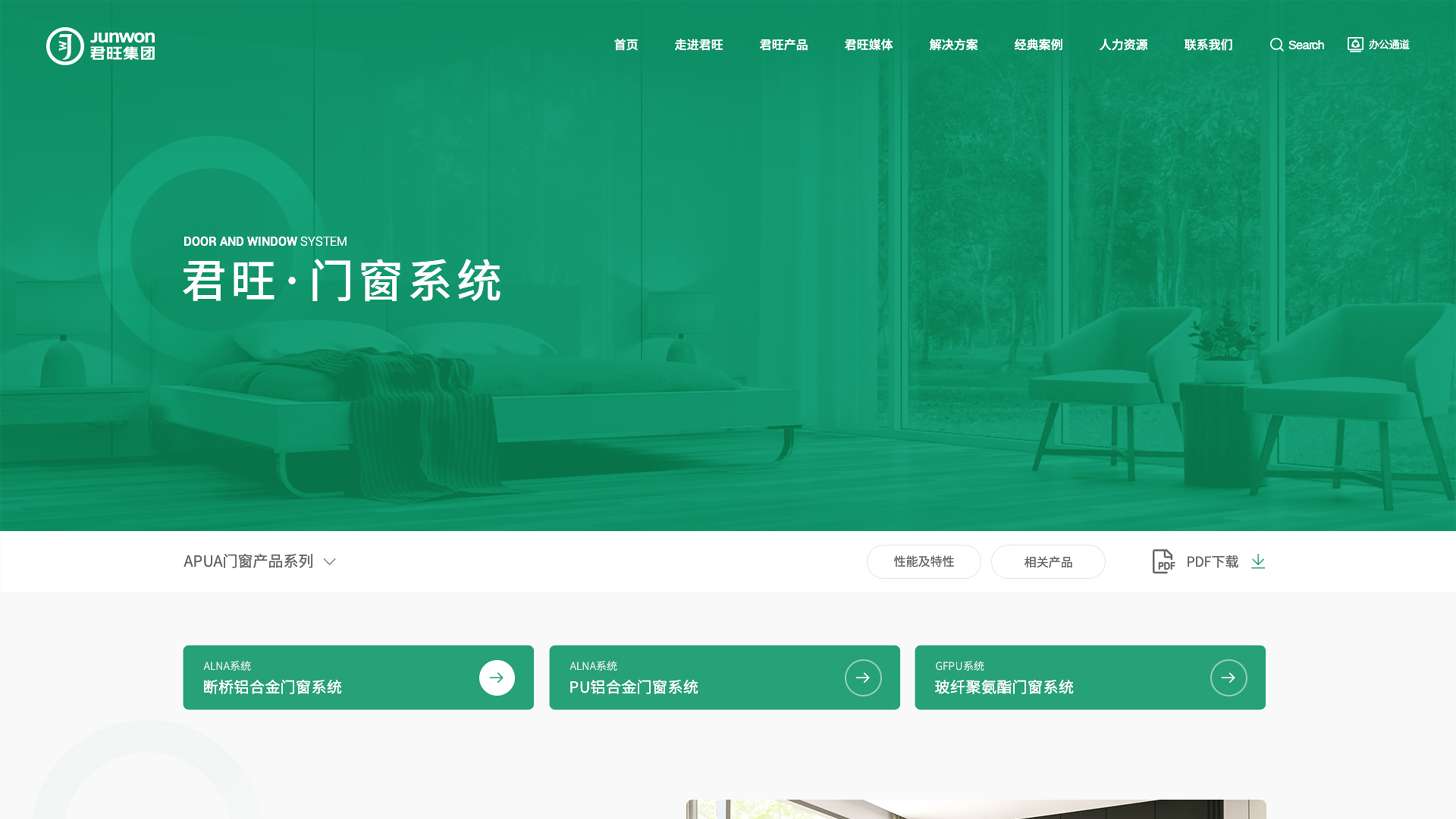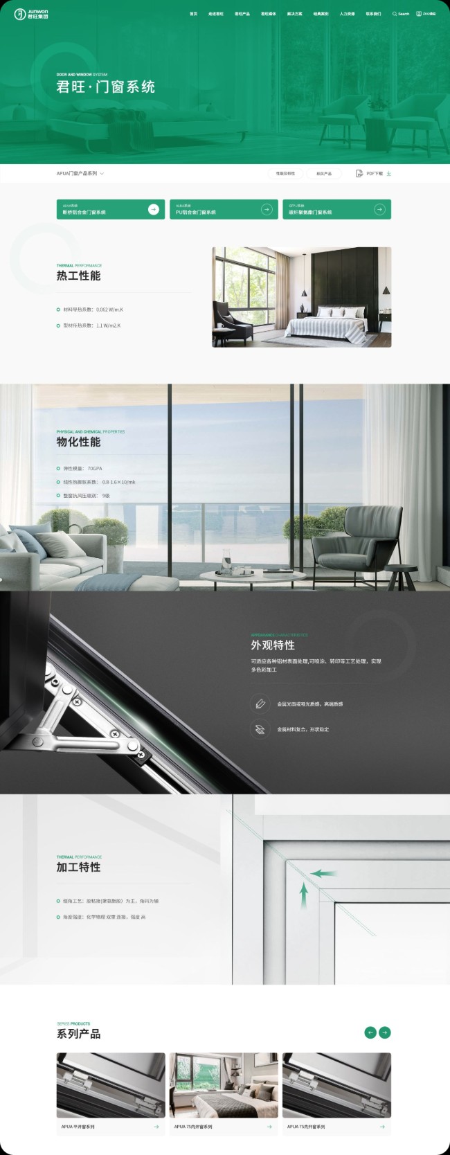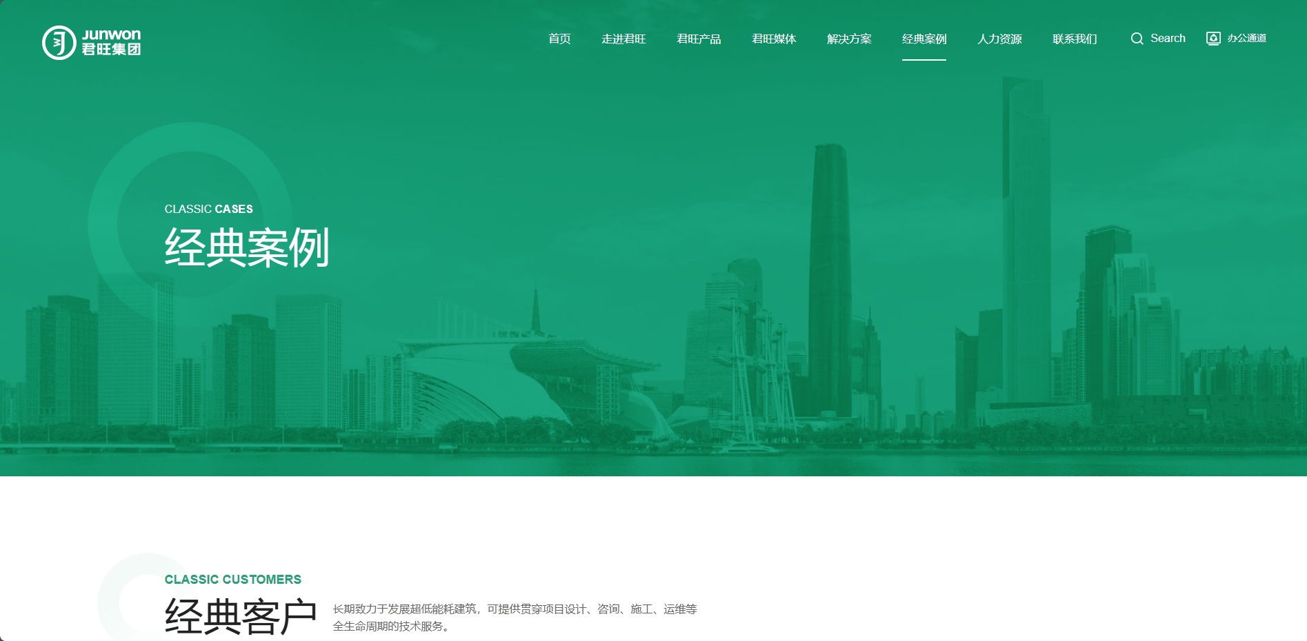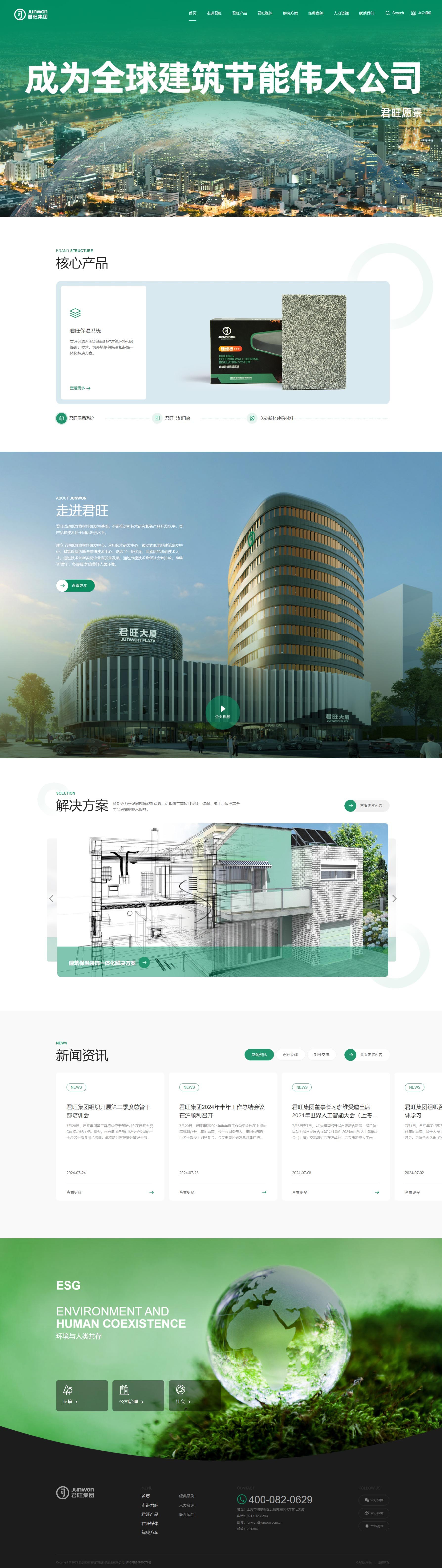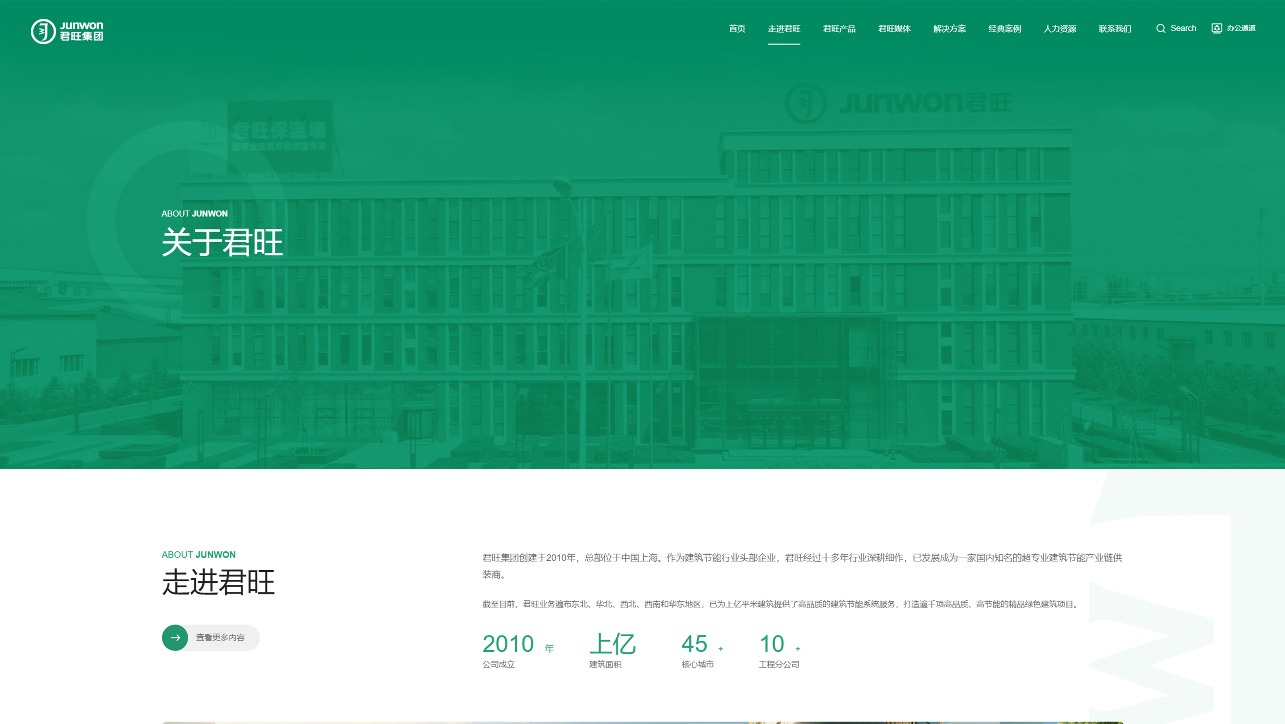 君旺企業官網以深綠色為主調,彰顯其綠色、環保的品牌理念,同時輔以淡藍、黑、白三色,營造清新、專業且層次分明的視覺效果。深綠主色寓意企業對綠色建築的深耕與承諾,淡藍增添清新與未來感,黑色凸顯權威與專業,白色則提升頁麵明亮度與閱讀舒適度。