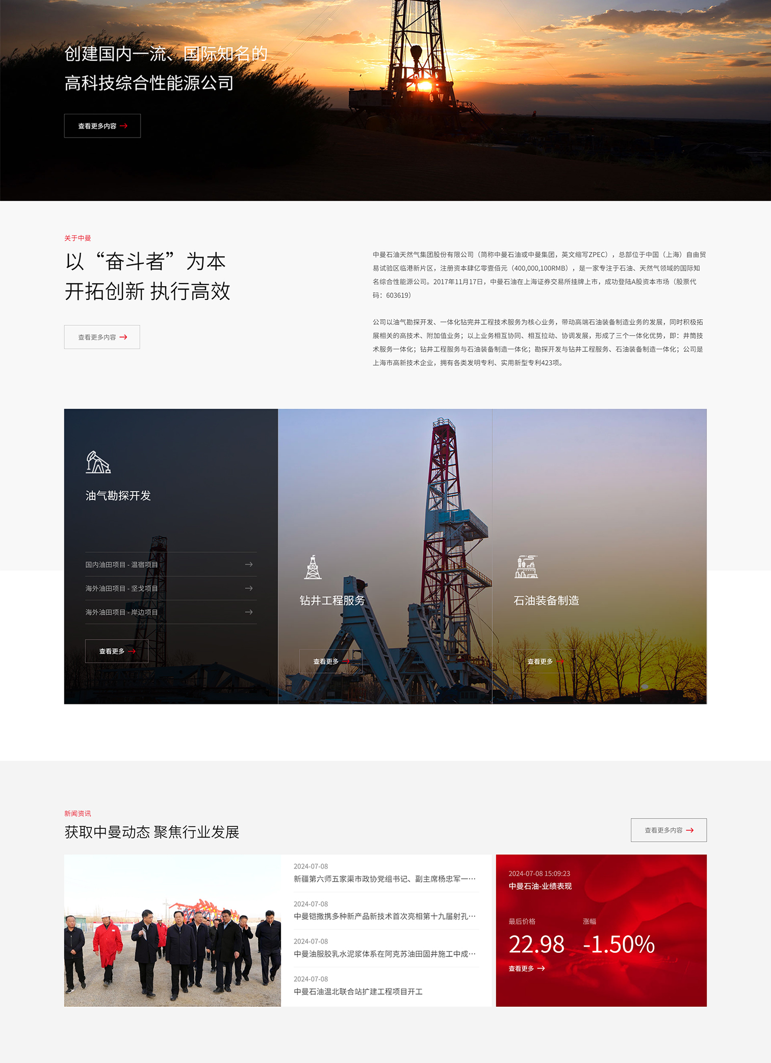 中曼石油網站風格鮮明,以紅色為主調展現企業熱情與活力,同時融合黑白灰元素,彰顯專業與穩重。內容呈現上注重專業性,布局清晰,信息豐富且更新及時。在交互體驗上,追求創新,提供流暢便捷的瀏覽感受及個性化服務。
