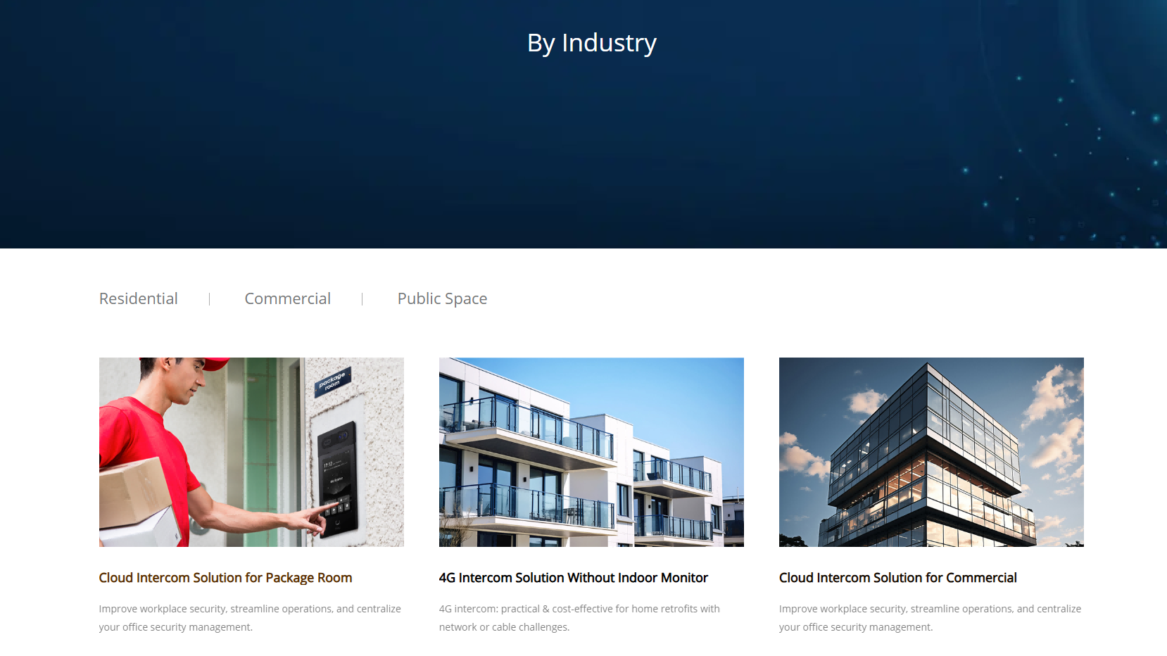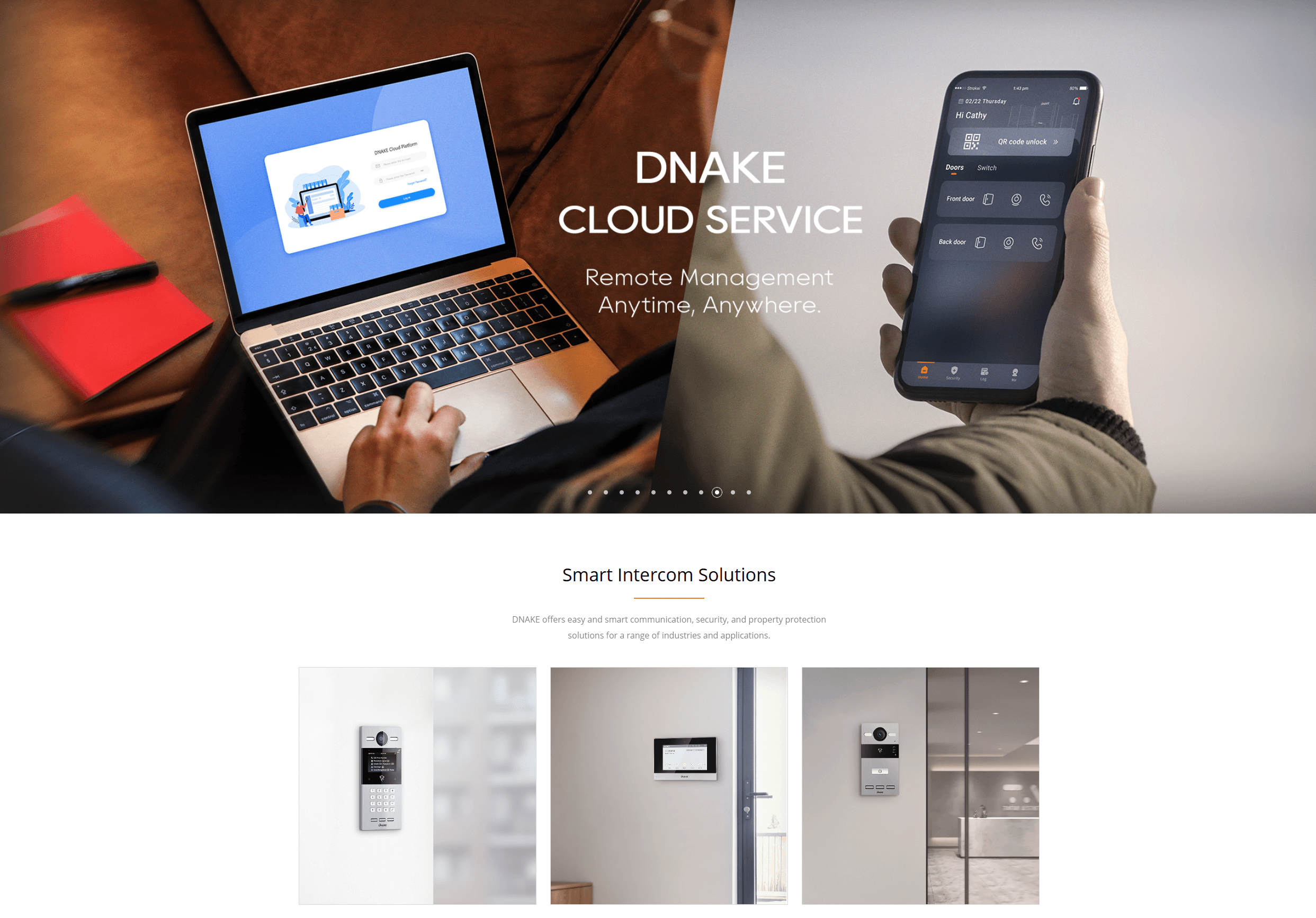 核心產品聚焦:在首頁中心位置設置較大的輪播圖或產品矩陣,展示熱門或最新的對講機及智能家居產品,如獲獎產品或新推出的門站擴展模塊等,配合醒目的宣傳語和產品亮點介紹,吸引用戶的注意力並引導其點擊查看詳情,突出公司的核心產品競爭力。 場景應用引導:在輪播圖下方或側邊欄設置不同應用場景的導航按鈕或圖標,如住宅、商業、公共空間等,點擊後可快速跳轉到相應的解決方案頁麵,幫助用戶根據自身需求快速定位到合適的產品和服務,強化網站的實用性和用戶導向性。