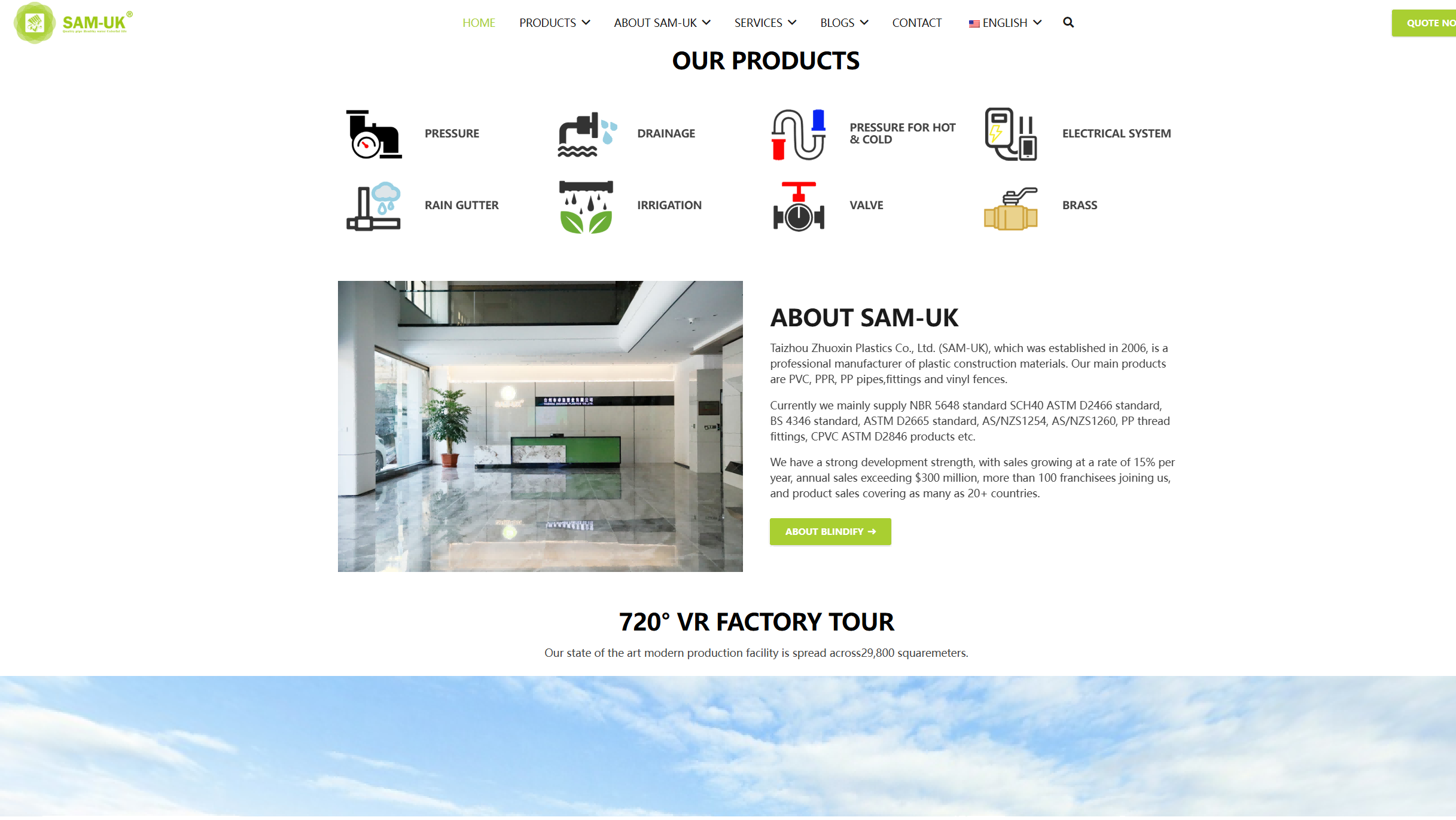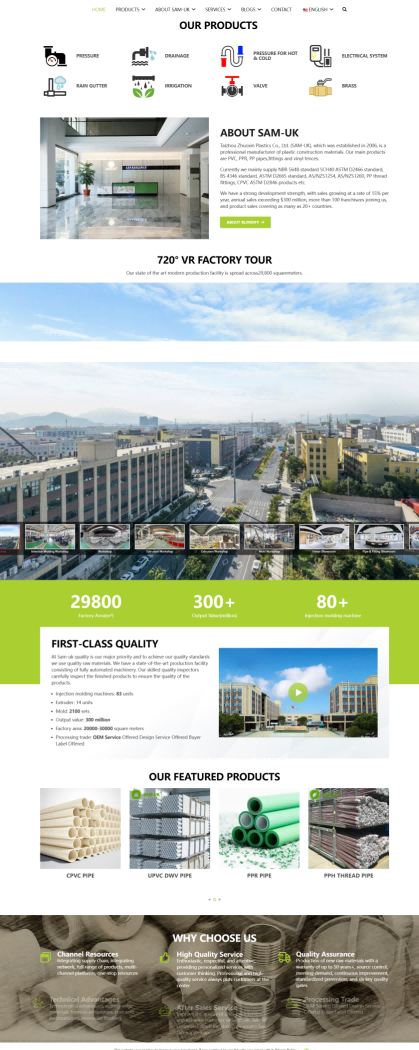 網站旨在全麵展示 SAM - UK 的塑料管材管件產品係列、強大的生產實力與優質的服務優勢。通過詳細的產品分類介紹、企業規模與認證展示、技術和售後等服務說明,向全球客戶傳遞專業可靠的品牌形象,吸引潛在客戶合作,為其提供管道係統解決方案,從而提升品牌在塑料建材行業的知名度與影響力,促進產品銷售與市場拓展。