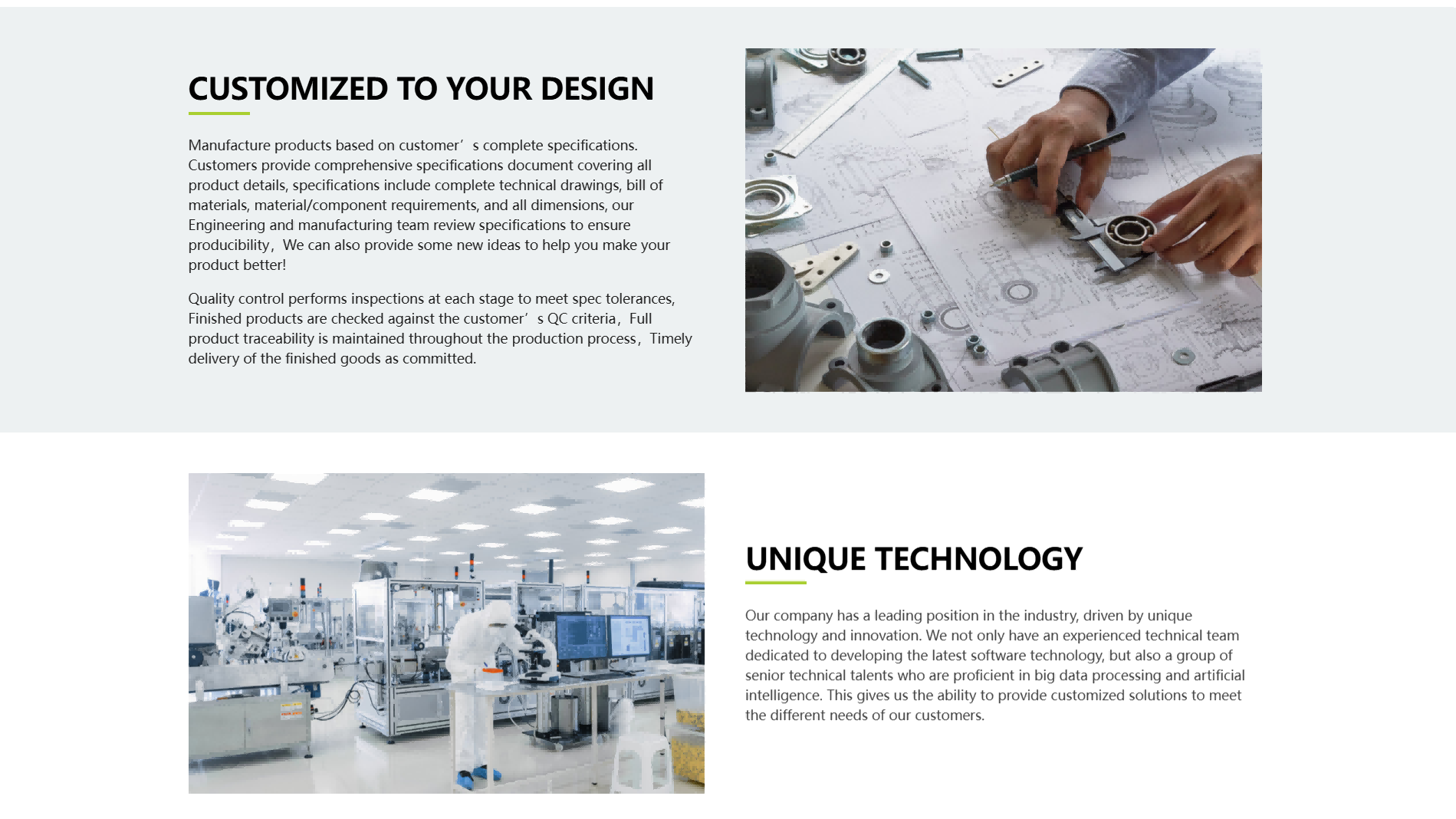 網站整體以白色為主色調,營造出專業、可靠的視覺氛圍,符合工業製造企業的形象特點。綠色的按鈕及部分重點文字,使頁麵層次分明,引導性強。產品圖片色彩真實自然,與整體色彩搭配協調,有助於用戶清晰地查看產品信息,讓用戶在瀏覽過程中感受到企業的嚴謹與專業。