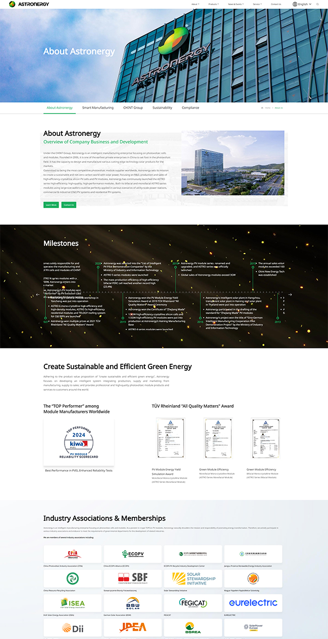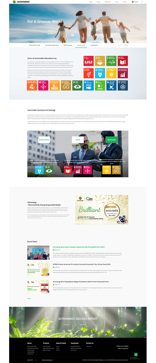 網站風格定位為現代科技風,以簡潔、專業和高效為主要特點。網站采用清晰的布局和直觀的導航,確保用戶能夠快速獲取關鍵信息。整體設計以綠色和白色為主色調,傳遞出環保和創新的品牌形象。圖文並茂的內容展示方式增強了視覺吸引力,同時運用動態效果和交互設計,提升用戶體驗。